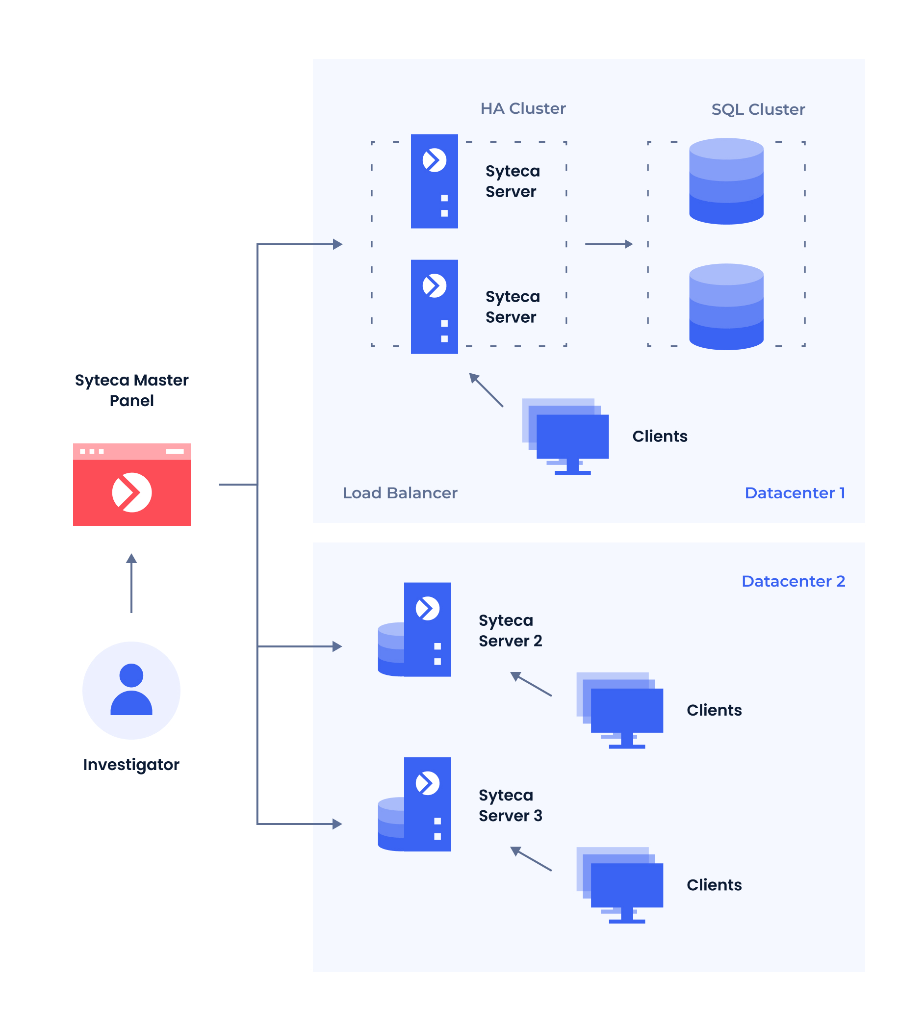 It is designed for medium-sized or large deployments of Syteca, and for use by organizations which have facilities distributed over several different locations, where each location has an Application Server deployed with an associated Management Tool.