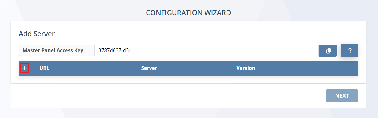 • On the Configuration page that opens, select the Master Panel Access tab, and paste the Access Key that you copied from the Master Panel into the empty field, and then click the Add button (to the right of it).
