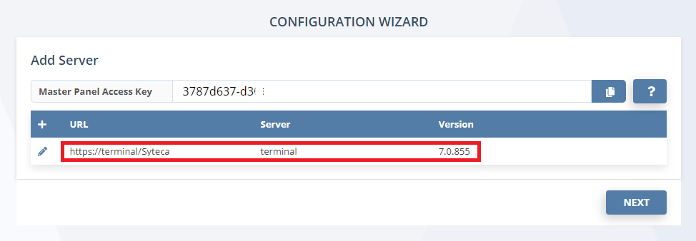 6. When the Master Panel has been connected to all the required Management Tools, click the Next button (in the bottom right).
