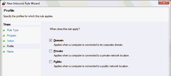 8. On the Profile page, select the profile of the network to be used for connecting remote computers to the Application Server, and then click Next.