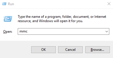 1. Press the Windows + R keys, and then enter "mmc" in the Run window, and click the OK button.