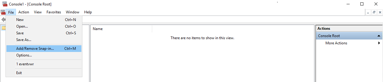 2. In the Console1 - [Console Root] window that opens, select the File menu, and then select Add/Remove Snap-in.