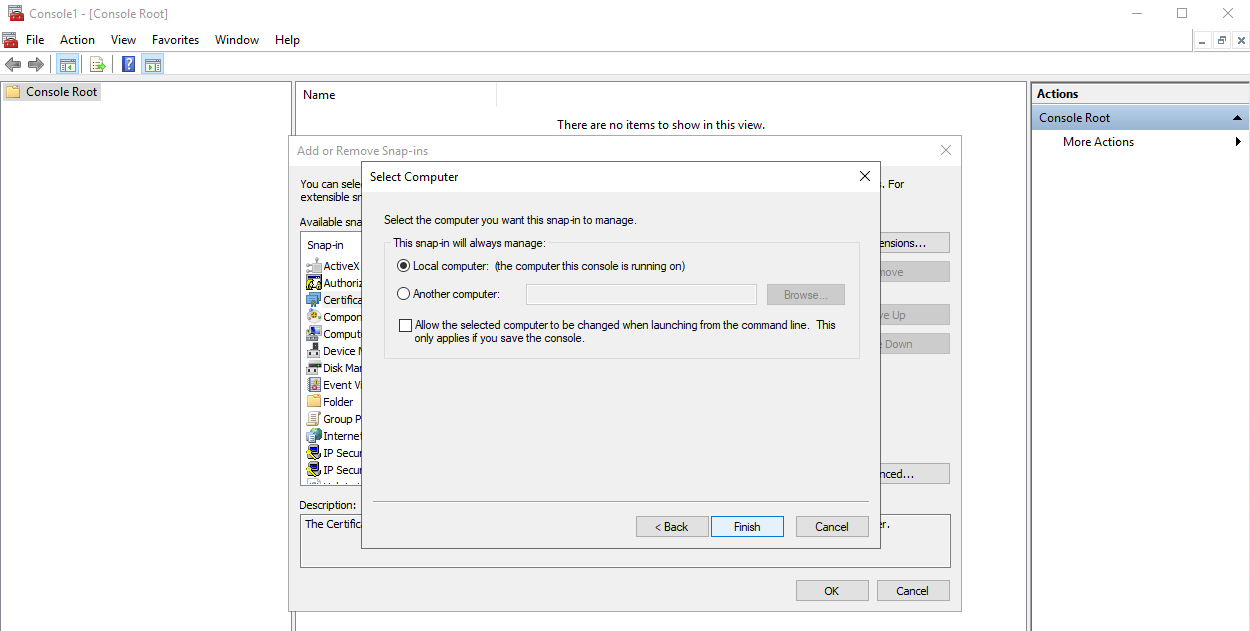 5. In the Select Computer window that opens, make sure that Local computer is selected, and then click the Finish button.