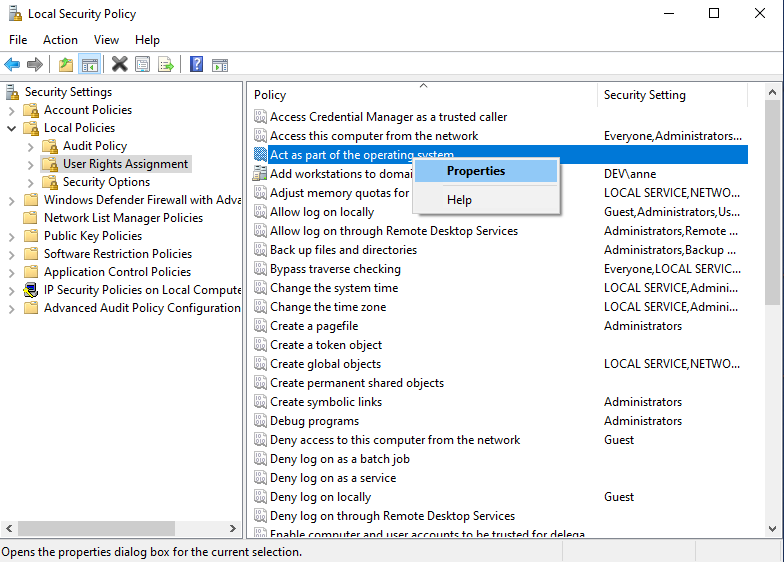 3. The Local Security Policy window then opens.