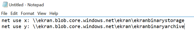 2. Open the Notepad application, and copy the following command into it, and then replace the values of “<storage-account-name>” and “<container-name>” with the names of the storage account and the container that you have created:
