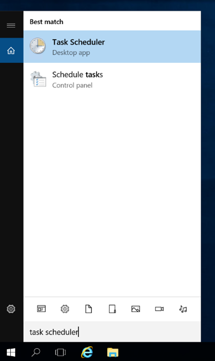 5. Open the Task Scheduler application (which can be found by using the search option on the Windows taskbar).
