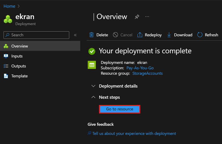 11. On the Review page, click Create, and wait until the account is deployed, and then click Go to resource to view the new account created.