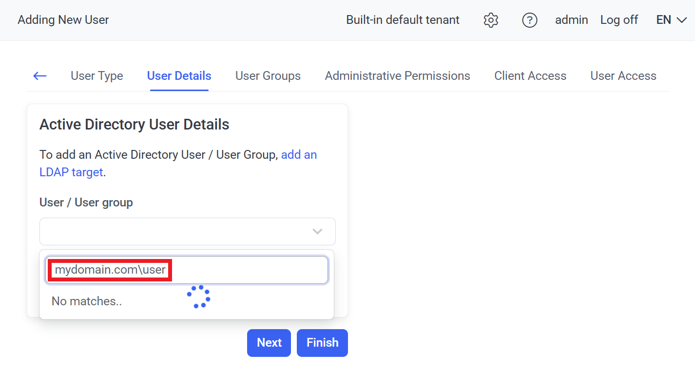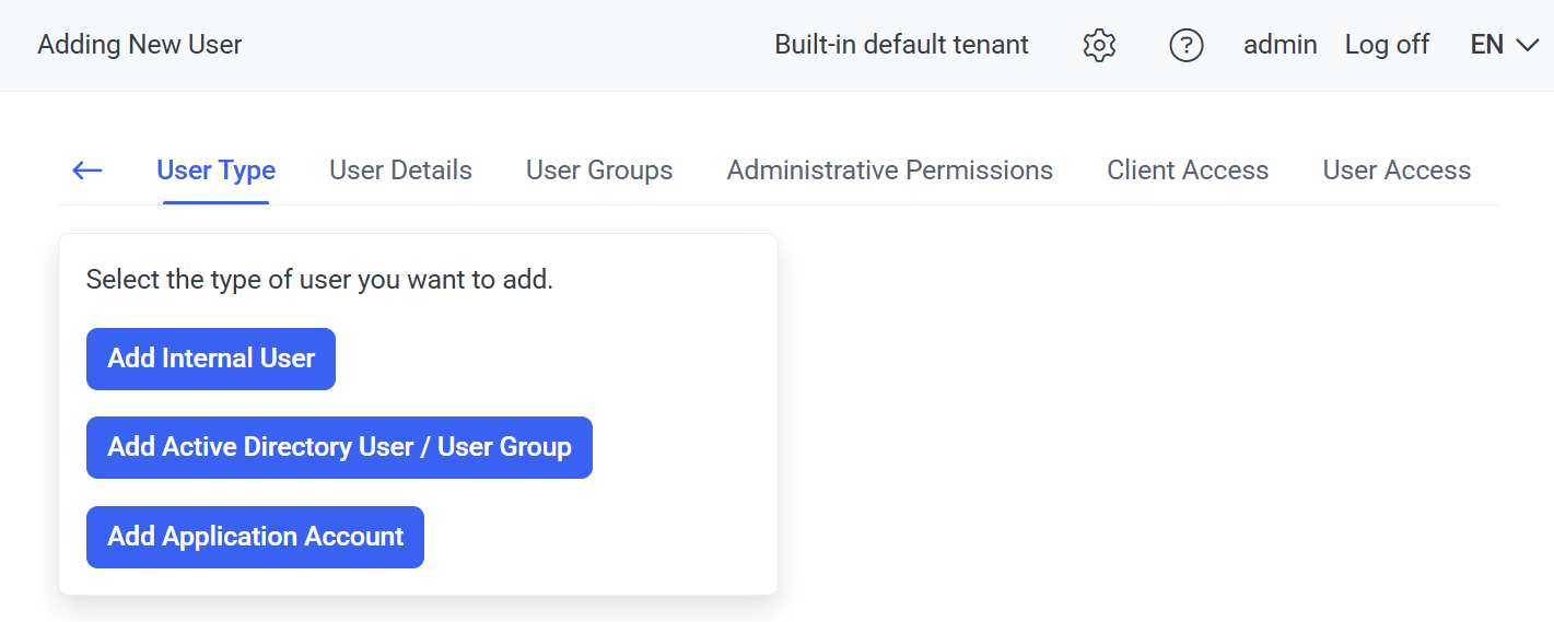 6.3.4. Complete adding the user in the usual way (including granting the user at least the administrative Management Tool Access permission).