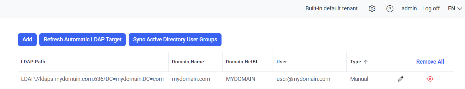 • LDAP Path: LDAP://ldaps.mydomain.com:636/DC=mydomain,DC=com