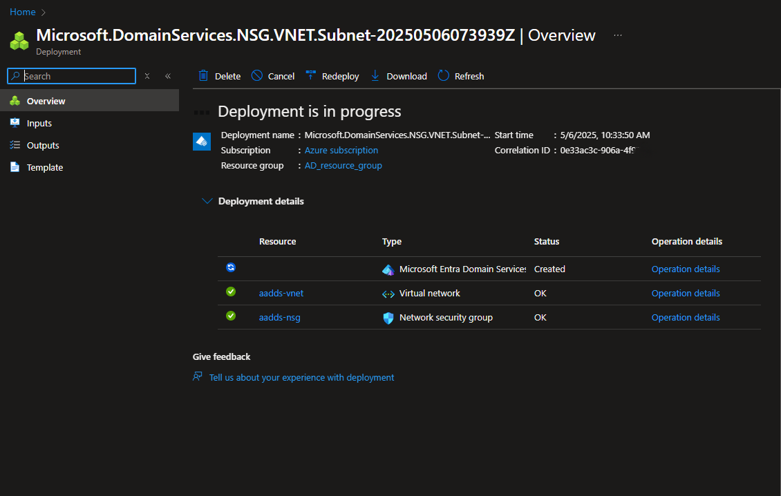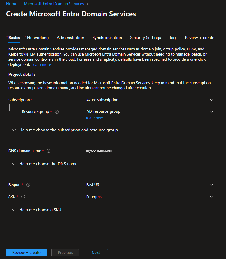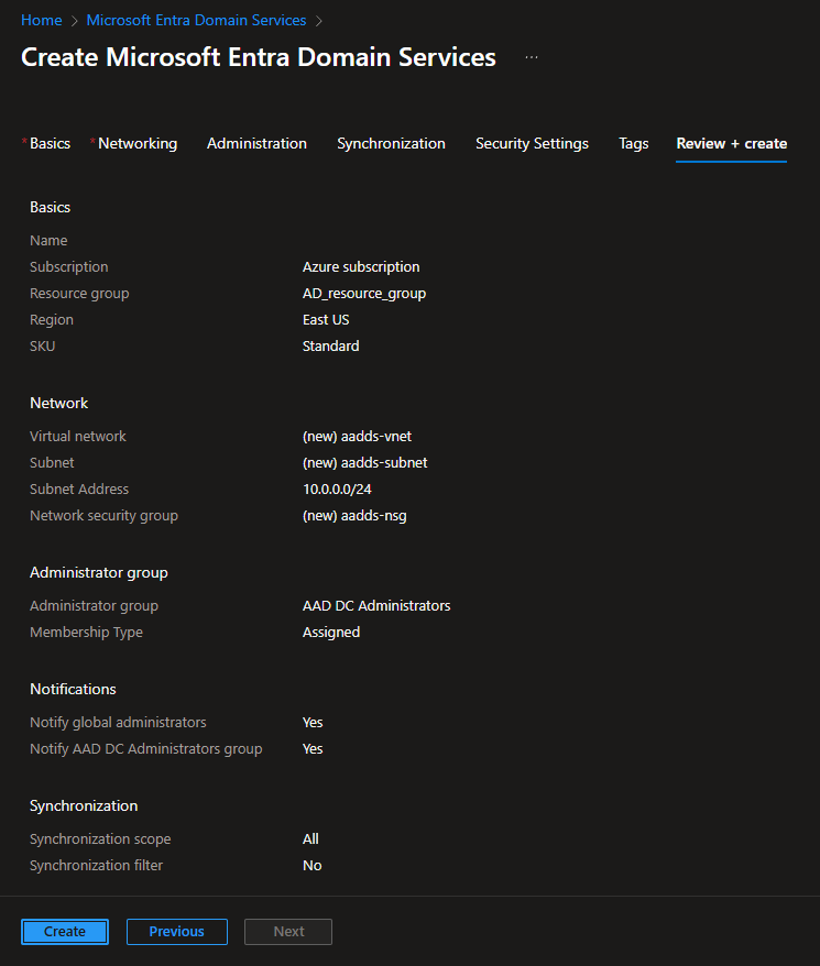 NOTE: The following information may also be useful for reference: Tutorial - Create a Microsoft Entra Domain Services managed domain - Microsoft Entra ID | Microsoft Learn