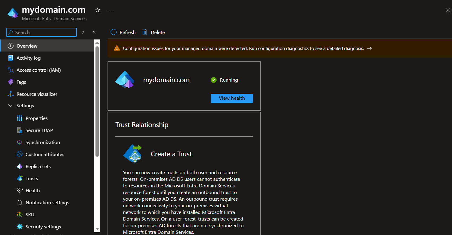 3.1. Open Microsoft Entra Domain Services, and check that the domain is running.
