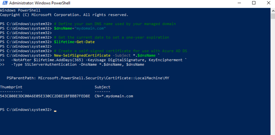 4.1. Run the following PowerShell commands on a Windows computer to create a self-signed certificate: