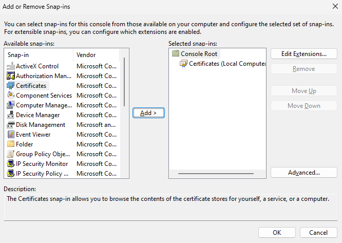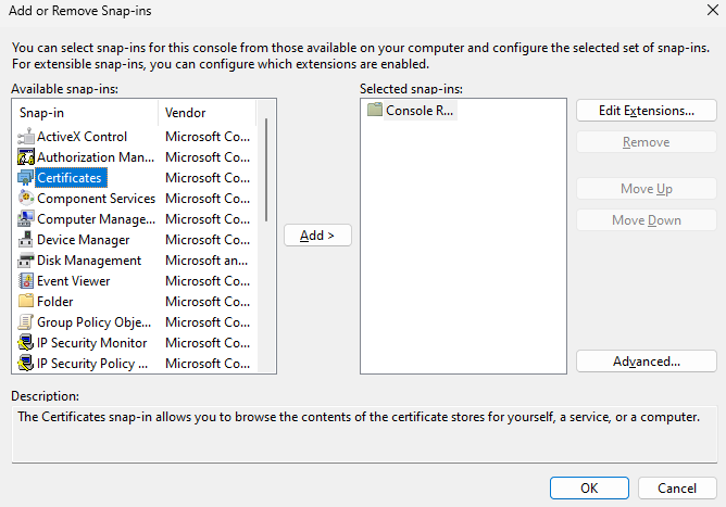 4.2.1. Open mmc, and on the File menu, select Add/Remove Snap-in...