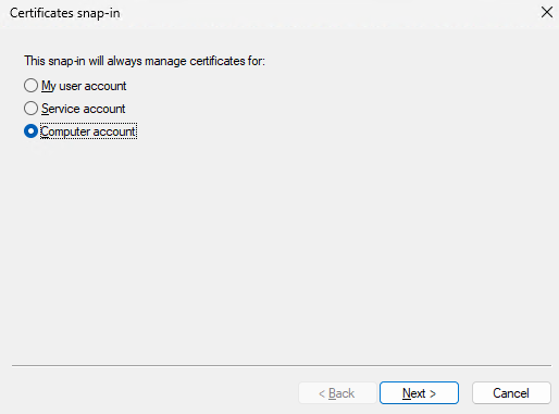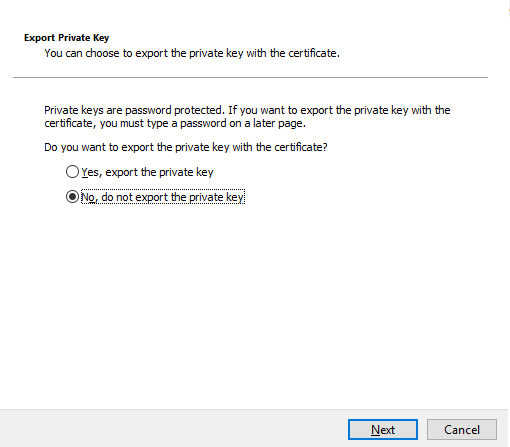 4.2. Export the self-signed certificate created (to be added to Settings > Secure LDAP of the domain created in Section 2 above) by using mmc, as follows: