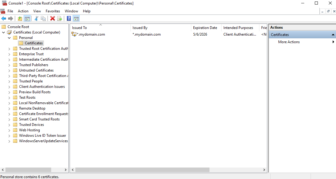4.2.6. Open the Certificates (Local Computer) > Personal > Certificates folder (i.e. store).