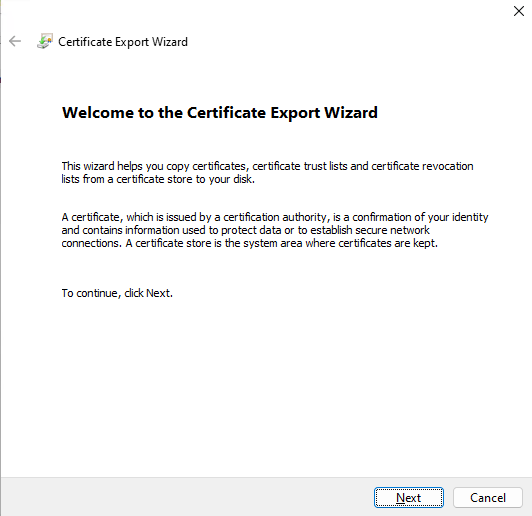4.3. Export the certificate again (but this time in a different file format), by using mmc (to be used on the computer where Syteca Application Server is installed), as follows: