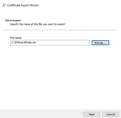 4.3.5. Click Browse..., and select the folder to export the CER certificate to, and then click Next.