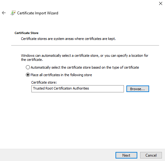 4.5.3. Select Place all certificates in the following store, and click Browse...