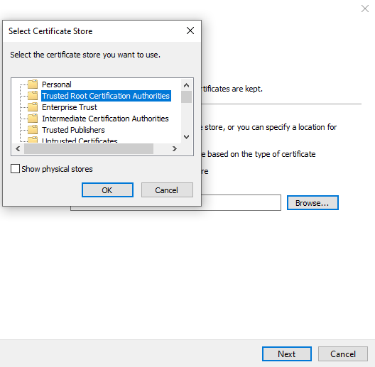 4.5.4. Select Trusted Root Certification Authorities, and click OK.