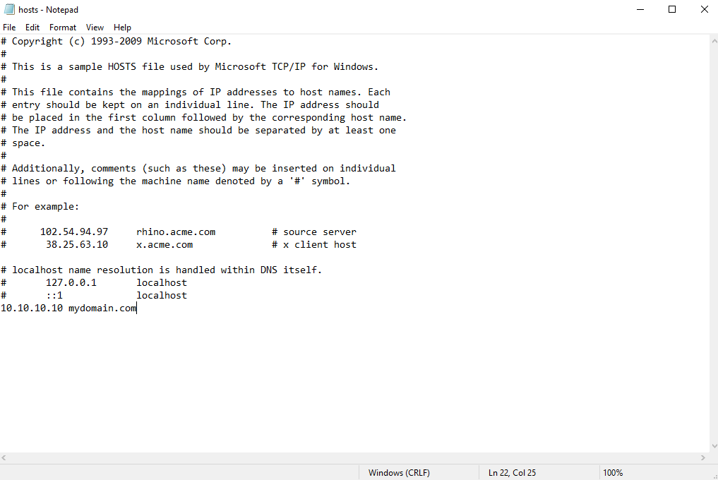 4.6.3. Open the hosts file (C:\Windows\System32\drivers\etc\hosts) on the computer where Syteca Application Server is installed.