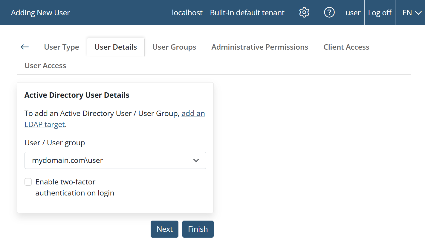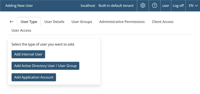 6.3.4. Complete adding the user in the usual way (including granting the user at least the administrative Management Tool Access permission)