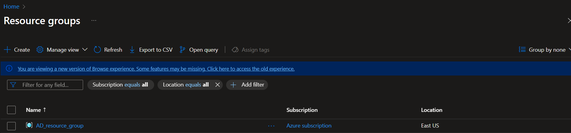 4.7.1. Click on the resource group in the Name column (where the domain is deployed) to open it.