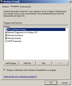 3. On the Exceptions tab, select the File and Printer Sharing checkbox.