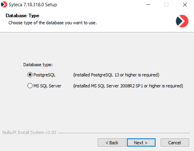 6. On the Database Type page, select the PostgreSQL option, and click Next.