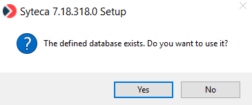 10. In the pop-up window that opens, click Yes to use the database (i.e. actually consisting of the 3 separate databases) created.