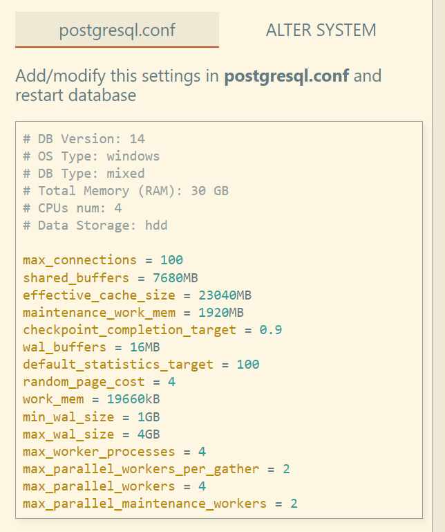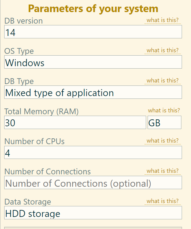 1. Open the following webpage to use the PostgreSQL tool there: https://pgtune.leopard.in.ua/