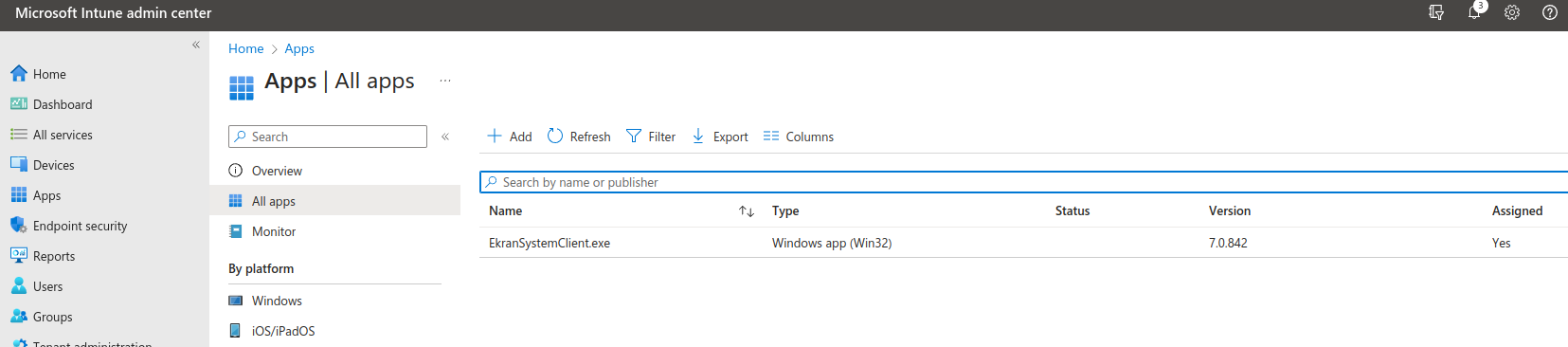 13. Once the process is complete, a new app will be displayed on the All apps tab, and the Syteca Client is then deployed to all the selected machines.