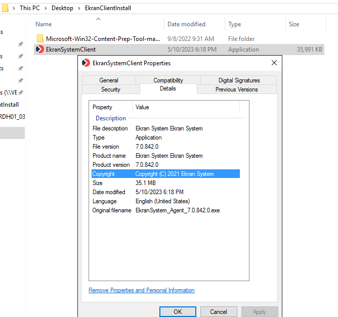 NOTE: You can get this information from the Details tab in the Properties of the original SytecaClient.exe file (or IN SAAS ONLY: the SytecaClient.msi file).