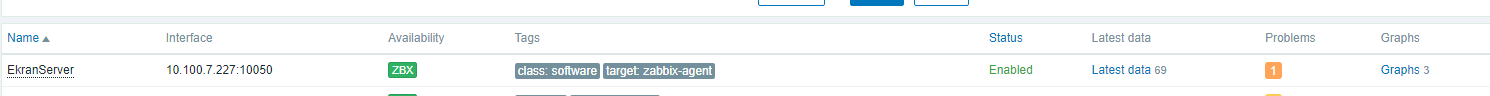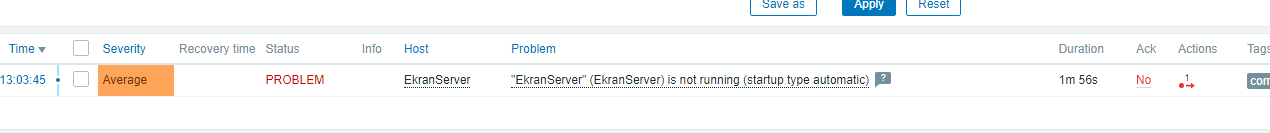 1. Stop the EkranServer service, and check that the Zabbix agent sends an email notification to the users that were specified above, and that an orange warning Problems icon is displayed on the main page.