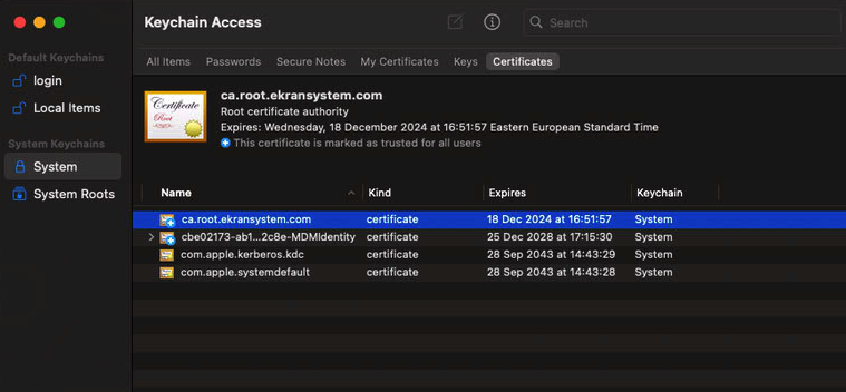 IN SAAS ONLY: Before deploying macOS Clients remotely using Workspace ONE UEM, it is required to first deploy the root certificate to the Keychain Access application.