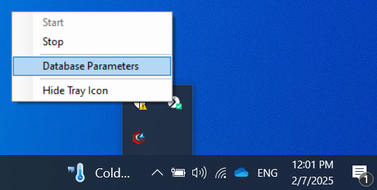 1. Right-click the Syteca Server tray icon in the Notification area, and select Database Parameters.