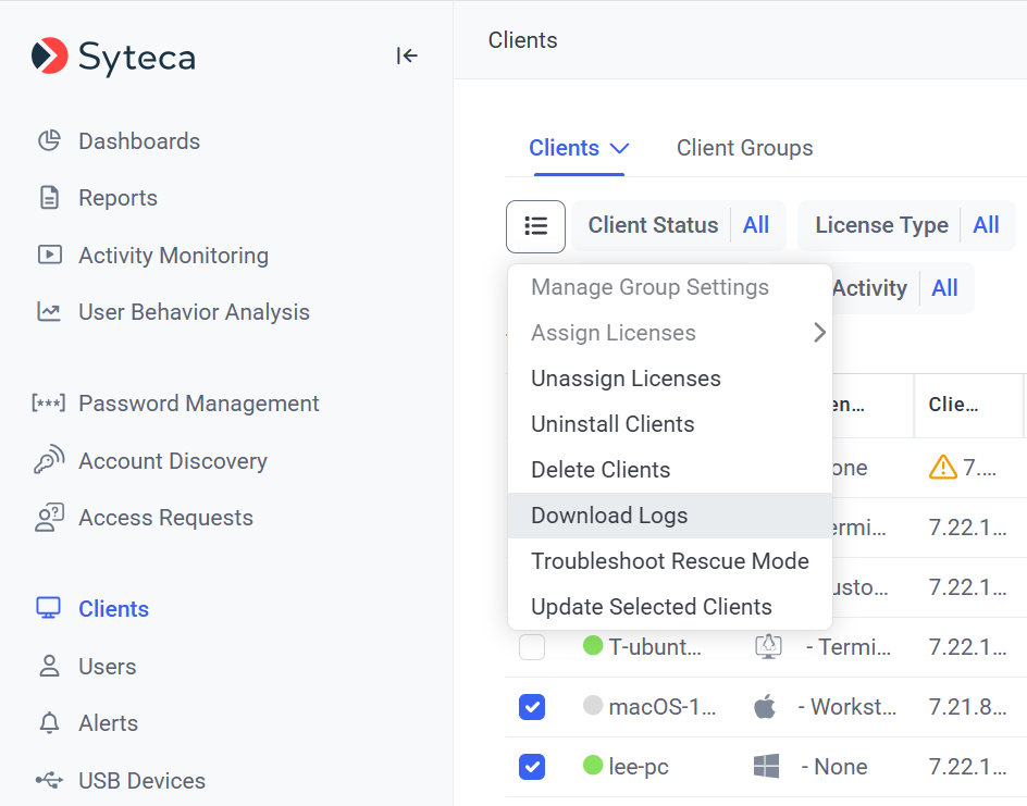 Syteca Client Logs