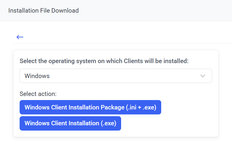 5. On the Installation File Download page, select Windows in the drop-down list, and then click the Windows Client Installation Package (.ini + .exe) button.
