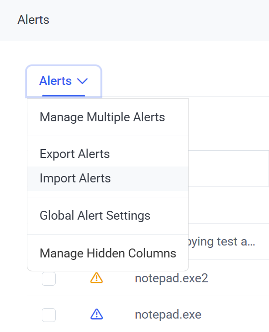 To import alerts from a file, do the following: