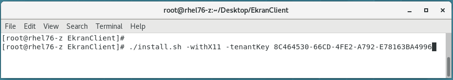 $ sudo ./install.sh -withX11 -tenantKey 90807A10-DF80-45EA-A7DE-A550B55F548A - The Client connects to the Application Server with the name specified in the .ini file via port 9447, and monitoring of the GUI (in X11 sessions) is enabled. The Client belongs to the tenant with the specified tenant key.