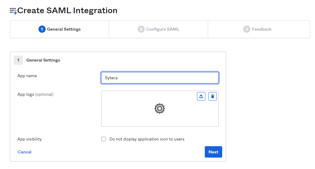 3. On the General Settings page, fill out the App name field with a name for the application, and then click Next.