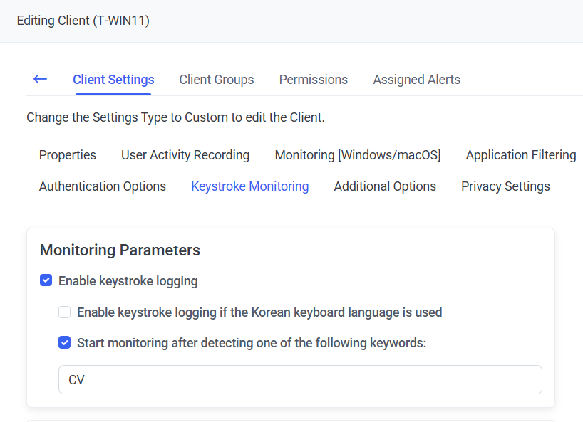 NOTE: See also the Sensitive Data Masking feature, which allows the detection and masking of clear text data (including keystrokes and clipboard data) on Windows Client computers based on regex values defined.