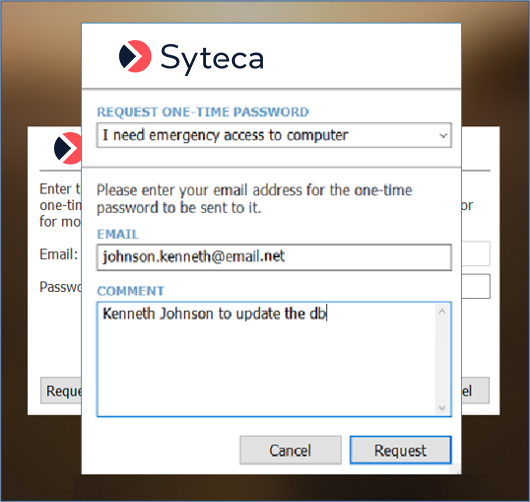NOTE: Alternatively, the user can select the "I need emergency access to computer" option, and then enter their Email address (see above).