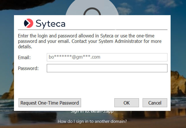5. The user enters the one-time password received by email into the Password field in the first pop-up window (where the Email address is now displayed automatically).
