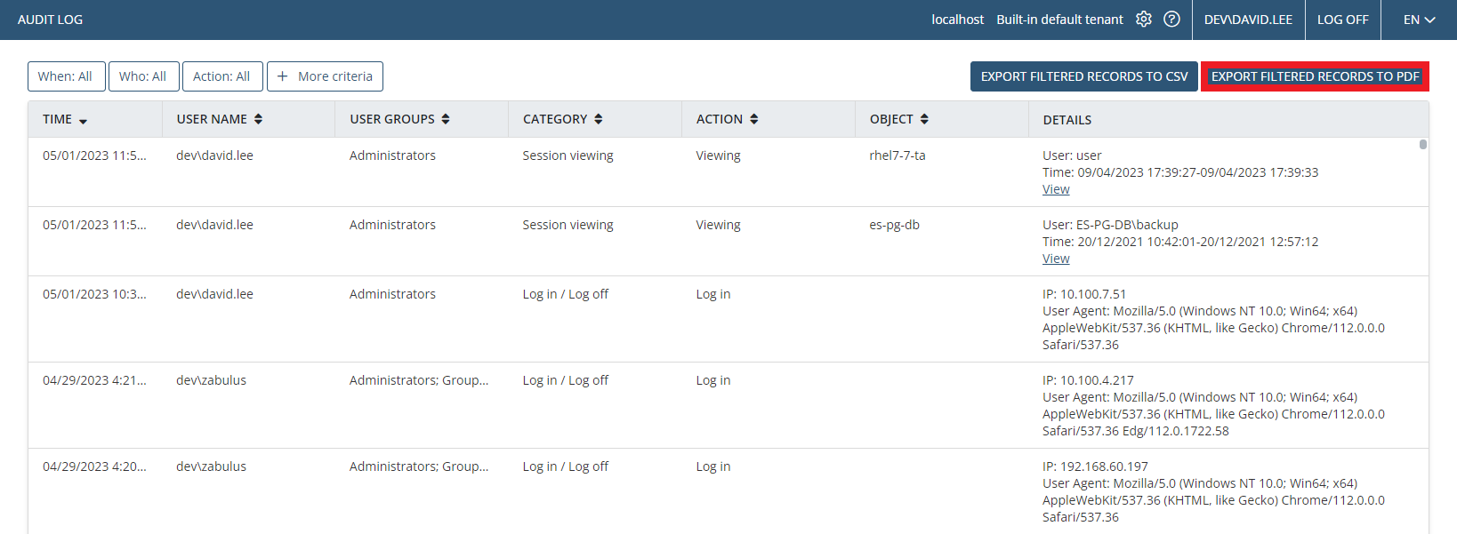 • SIEM Integration. User’s comment on session in CEF and LEEF logs – added.
