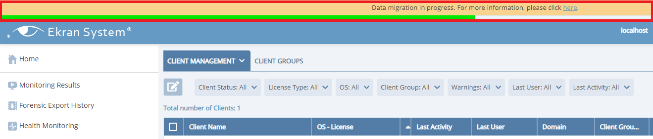 • Database structure – optimized. Please note that after an update of Syteca, the data migration process begins as soon as the Application Server starts up. Migration takes place in the background and may take some time.