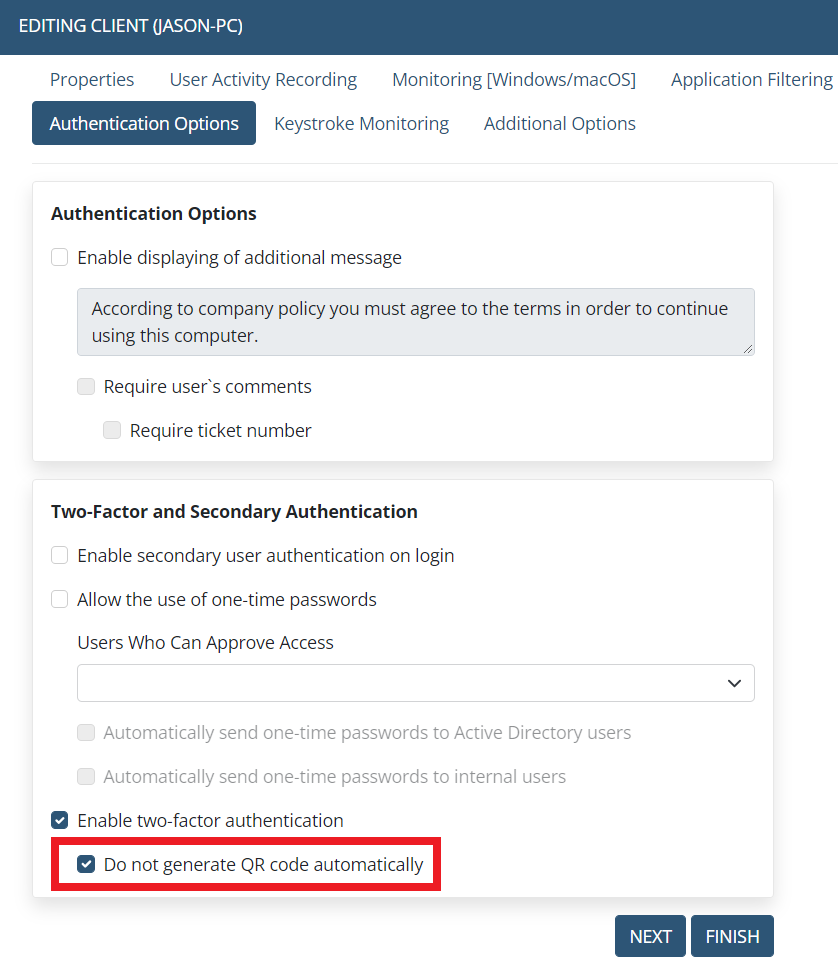 • [Displaying of an Additional Message on Login to Windows Clients:] It was not possible to configure the "Message display frequency" option if the "Require user consent" or "Require user`s comments" options were enabled - fixed.