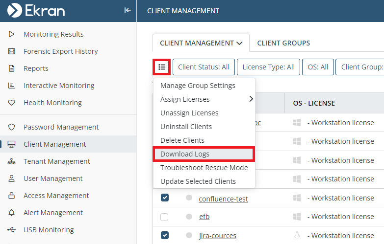 • [Monitoring Windows Clients:] In certain cases, the Task Manager could not be opened on Windows Client computers (due to the EkranClientSession.exe process) - fixed.