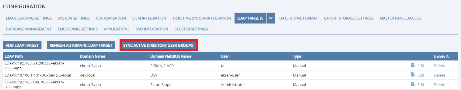 • [LDAP Targets:] Endpoint computers were erroneously displayed in the "Domain" drop-down list in the "Update data for AD user groups" popup window (when syncing Active Directory user groups manually) - fixed.