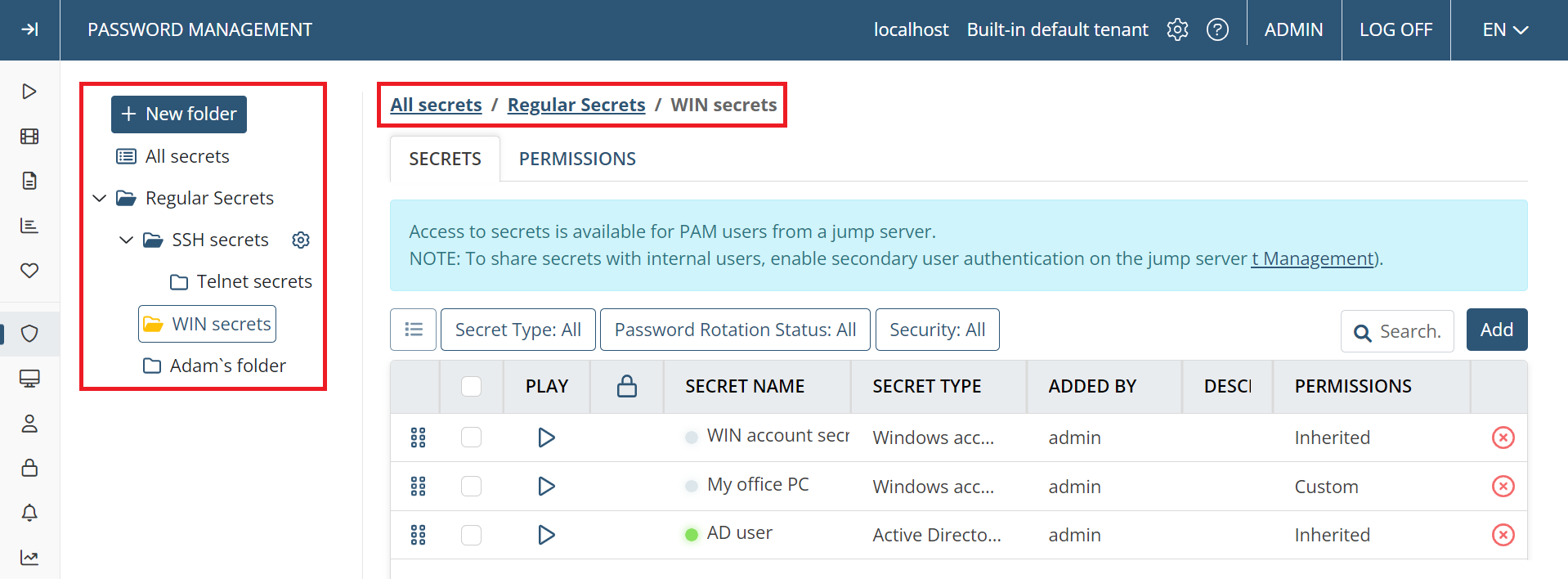 • [Account Discovery:] Onboarding Active Directory accounts failed (with the "Onboarding failed for all selected credentials" error), if a secret was used for password rotation - fixed.