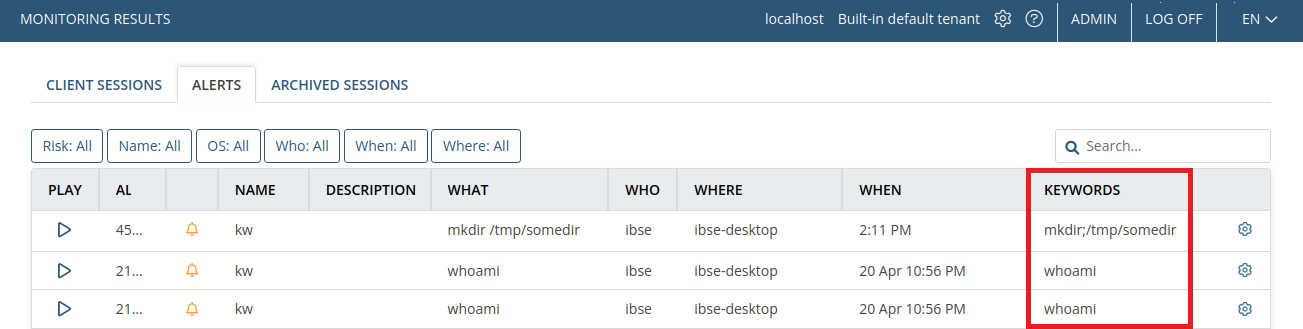• Alerts (on Windows Clients) – now include a unique Alert ID, and the specific keyword that has triggered the alert, in both email notifications and the Alert Viewer.